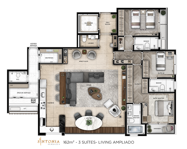 📍 Localizado em um terreno de 4.300m² na Rua Campevas – Perdizes, um dos melhores bairros para se viver em São Paulo, o projeto apresenta duas torres e três opções de plantas, com metragens de 106m², 162m² e 222m². Além disso, conta com lojas e uma área de lazer completa, criando uma verdadeira sinfonia de bem-estar e exclusividade.